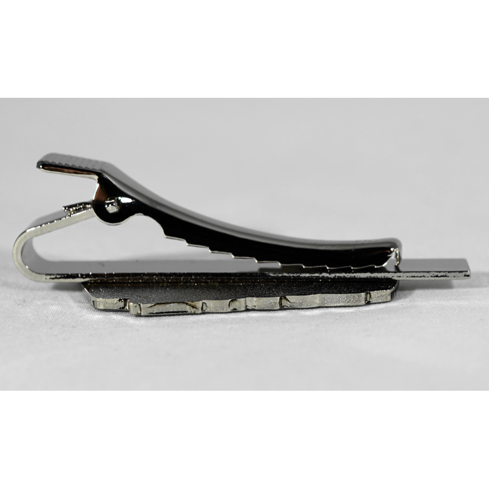 2-D hard emaille pin op een ondergrond van zilverkleurig metaal gezet op een krokodillebek dasspeld met opzetstukje. De dasspeld zelf is 55mm lang, de Traxx is 40mm lang en 16.85mm hoog.