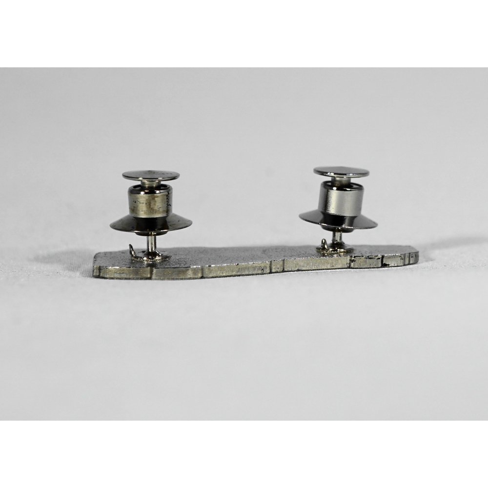 2-D hard emaille pin op een ondergrond van zilverkleurig metaal. Aan de achterzijde zitten 2 vlindersluitingen. De Sgmm is 40mm lang en 17mm hoog